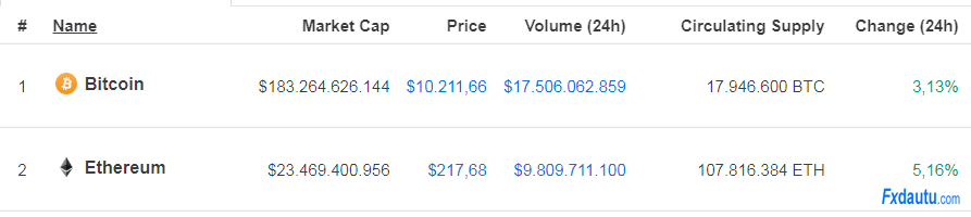 Vốn hóa của 2 đồng tiền dẫn đầu ở thời điểm hiện tại.