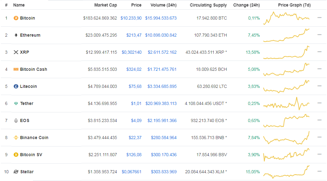 Top 10 kết nạp thành viên mới từ sàn giao dịch Huobi với cái tên Huobi Token, khi đồng tiền này tăng 1,51% trong 24 giờ qua, lên 4,10 USD cùng giá trị thị trường 1,3 tỉ USD.
