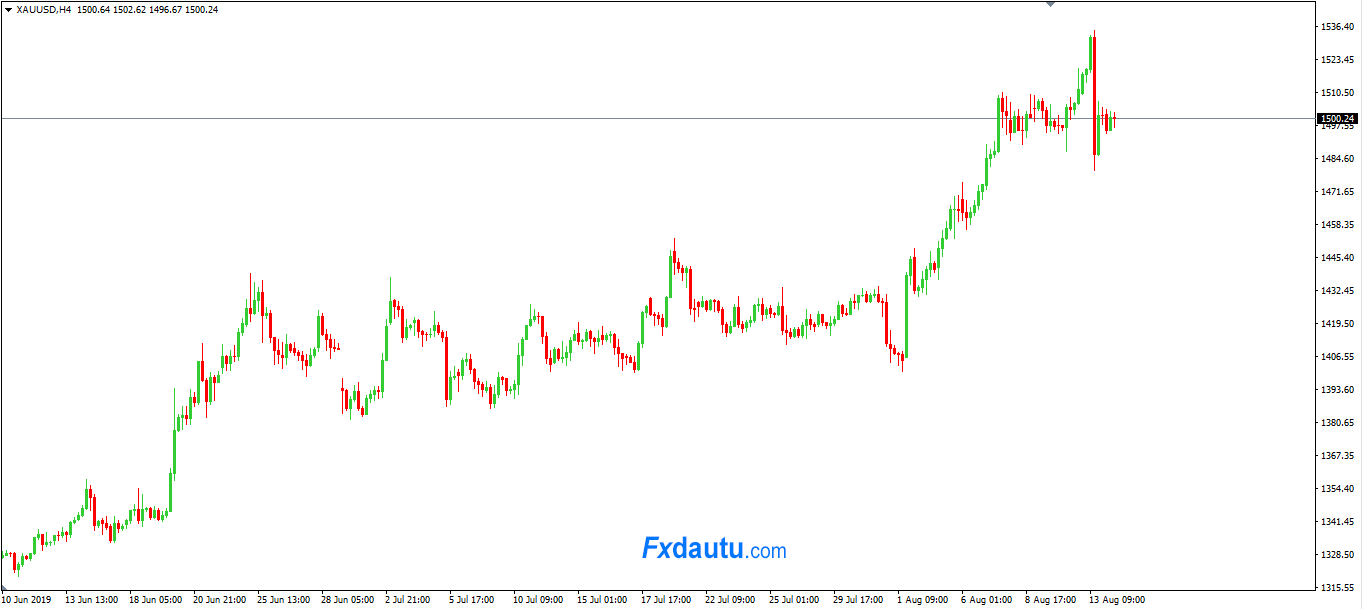 Giá vàng đã vượt mốc 1,546 USD/oz vào đầu phiên ngày thứ Ba, mức cao nhất trong phiên kể từ tháng 4/2013, dữ liệu từ FactSet cho thấy, khi nhà đầu tư chú ý đến các cuộc biểu tình ở Hồng Kông, sự thất bại từ cuộc bầu cử sơ bộ hồi cuối tuần trước ở Argentina và đà lao dốc trên các thị trường chứng khoán, cũng như nỗi lo về triển vọng kinh tế toàn cầu gắn liền với cuộc chiến thương mại Mỹ – Trung.