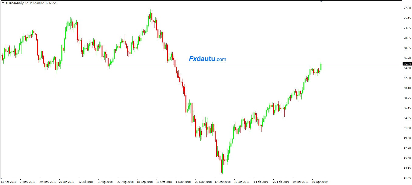 Hợp đồng tương lai dầu WTI và dầu Brent đã tiến gần đến đỉnh 6 tháng trong một bản tin báo cáo rằng Ngoại trưởng Mỹ Mike Pompeo sẽ thông báo rằng “vào ngày 2/5 Bộ ngoại giao sẽ không còn từ bỏ lệnh trừng phạt với bất kỳ quốc gia nào hiện tại đang nhập khẩu hoặc tiêu thụ dầu của Iran”.