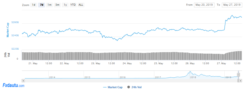 Tổng vốn hóa thị trường đã tăng lên tới 269,7 tỷ đô la từ mức 244,5 tỷ đô la vào thứ Sáu tuần trước.